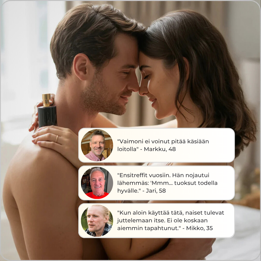 Feromonit lähettävät tiedostamattomia signaaleja hänen aivoihinsa, jotka vahvistavat vetovoimaa — sinun ei tarvitse tehdä mitään.